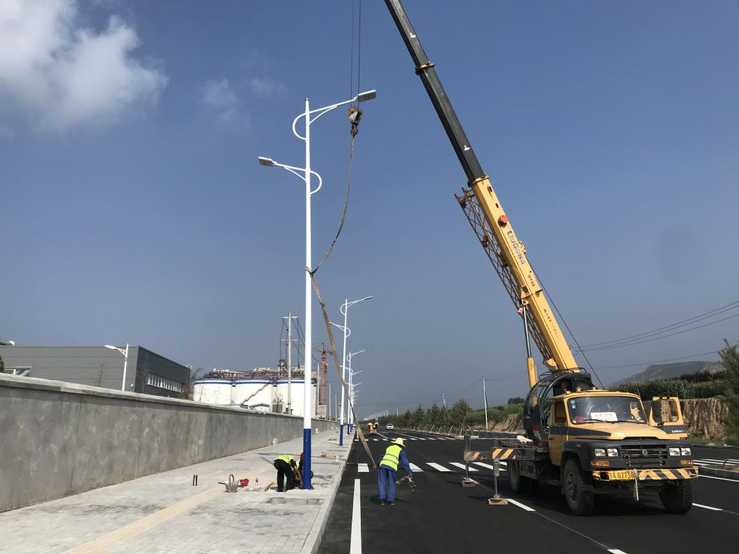 2022-08-11為了使平?jīng)龉I(yè)園區(qū)北大路(汽修路-泓源東路段)照明工程按期交付使用,宜浩園林公司增加施工人員,加大施工設(shè)備投入,不懼連日高溫天氣,加班加點(diǎn)的進(jìn)行基礎(chǔ)澆筑、燈頭安裝及路燈吊裝等工作,力爭早日完成安裝,達(dá)到運(yùn)行條件。項(xiàng)目由宜浩園林公司負(fù)責(zé)實(shí)施,道路全長2