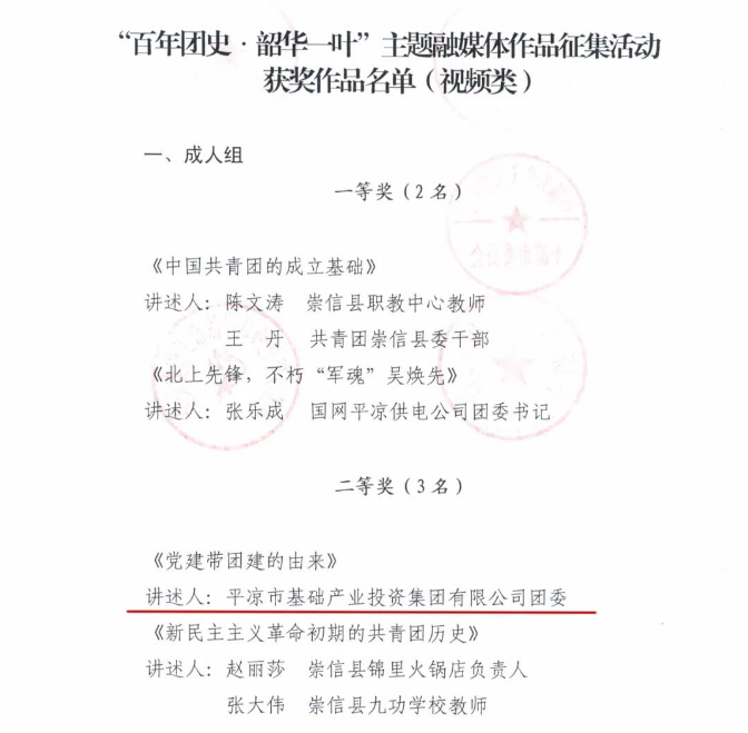 2022-04-28近日,在市委宣傳部、市委網信辦、市教育局、團市委、市文聯、市廣播電視臺、市少工委聯合開展的“百年團史·韶華一葉”主題融媒體作品征集活動中,市產投集團團委錄制的“紅色輕騎兵”講團史《黨建帶團建的由來》微視頻,喜獲視頻類二等獎。近年來,市產投集團團委在公